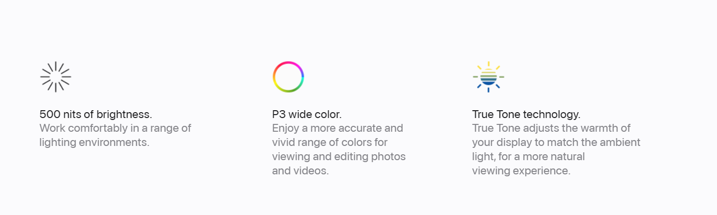 - Superbe écran Retina : Plongez-vous dans des visuels éclatants avec le superbe écran Retina, parfait pour le travail, le divertissement et tout le reste.